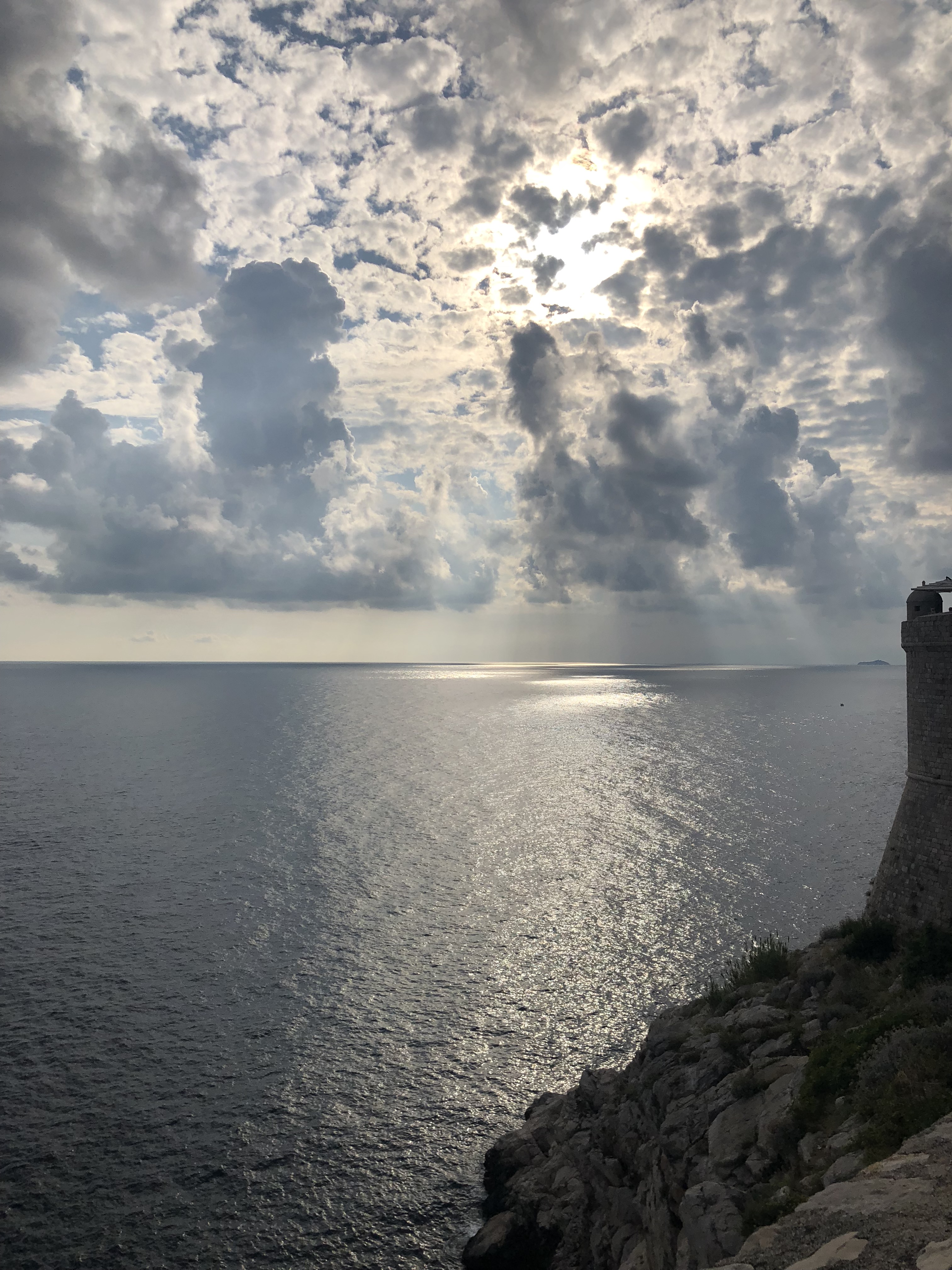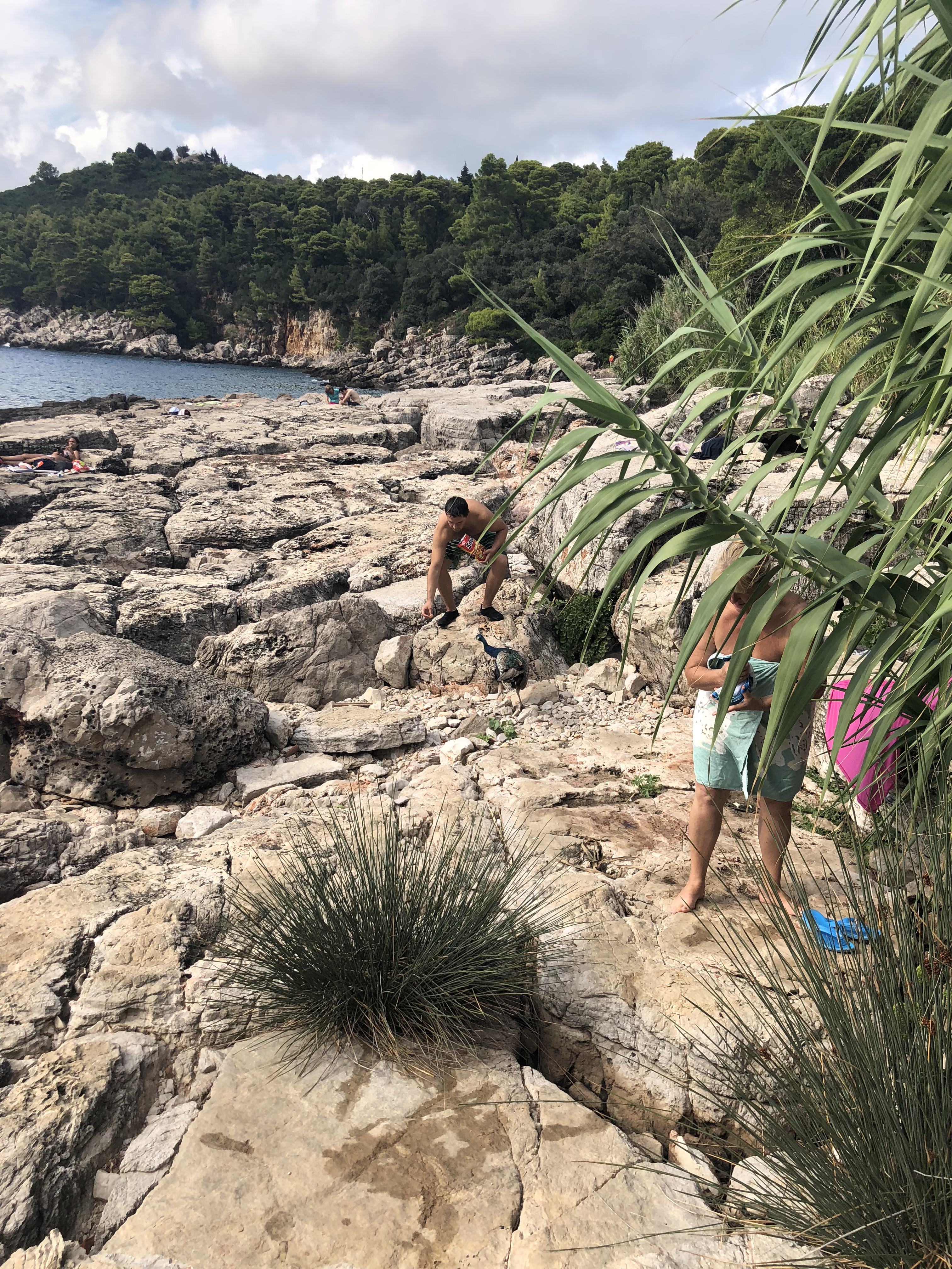 when I left I had a couple of nights in Dubrovnik before flying home, unbelievable white polished city out of time and dreams and the island of Lokrum with its rocky beaches trawled by peacocks, crumbling monastery, white paths to paradise, giant aloe and curse and memory and hunger and thunder over sea