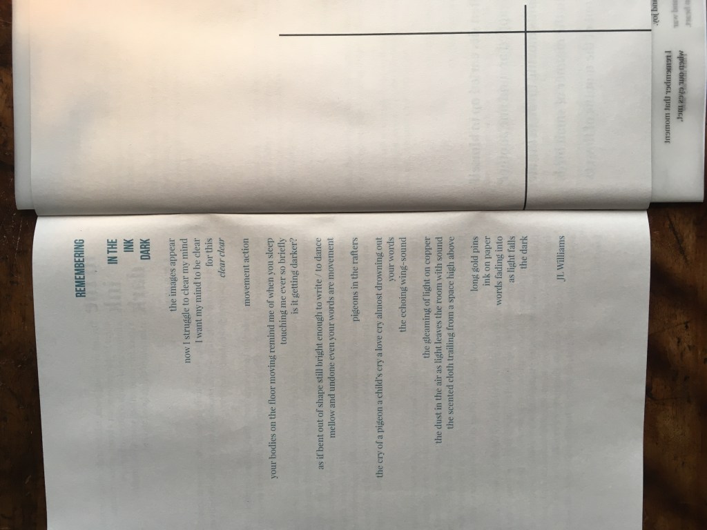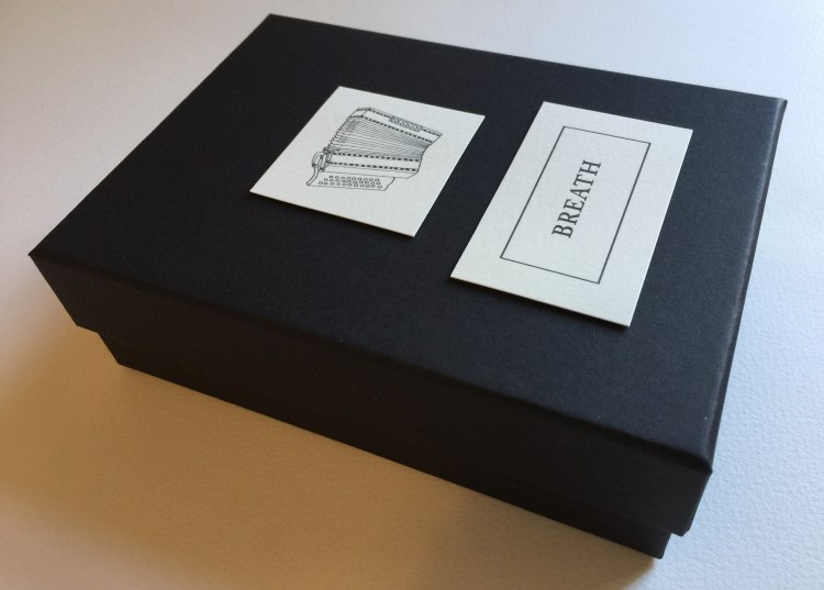 BREATH, by Julie Johnstone of Essence Press. BREATH features work inspired by the theme of breathing. Text works, poems and poem fragments by Jane Hirshfield, Autumn Richardson, Jayne Wilding and JL Williams are intermingled with drawings of melodeons by the artist Laurie Clark.